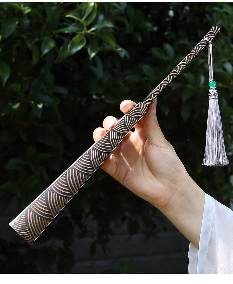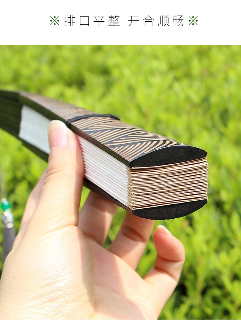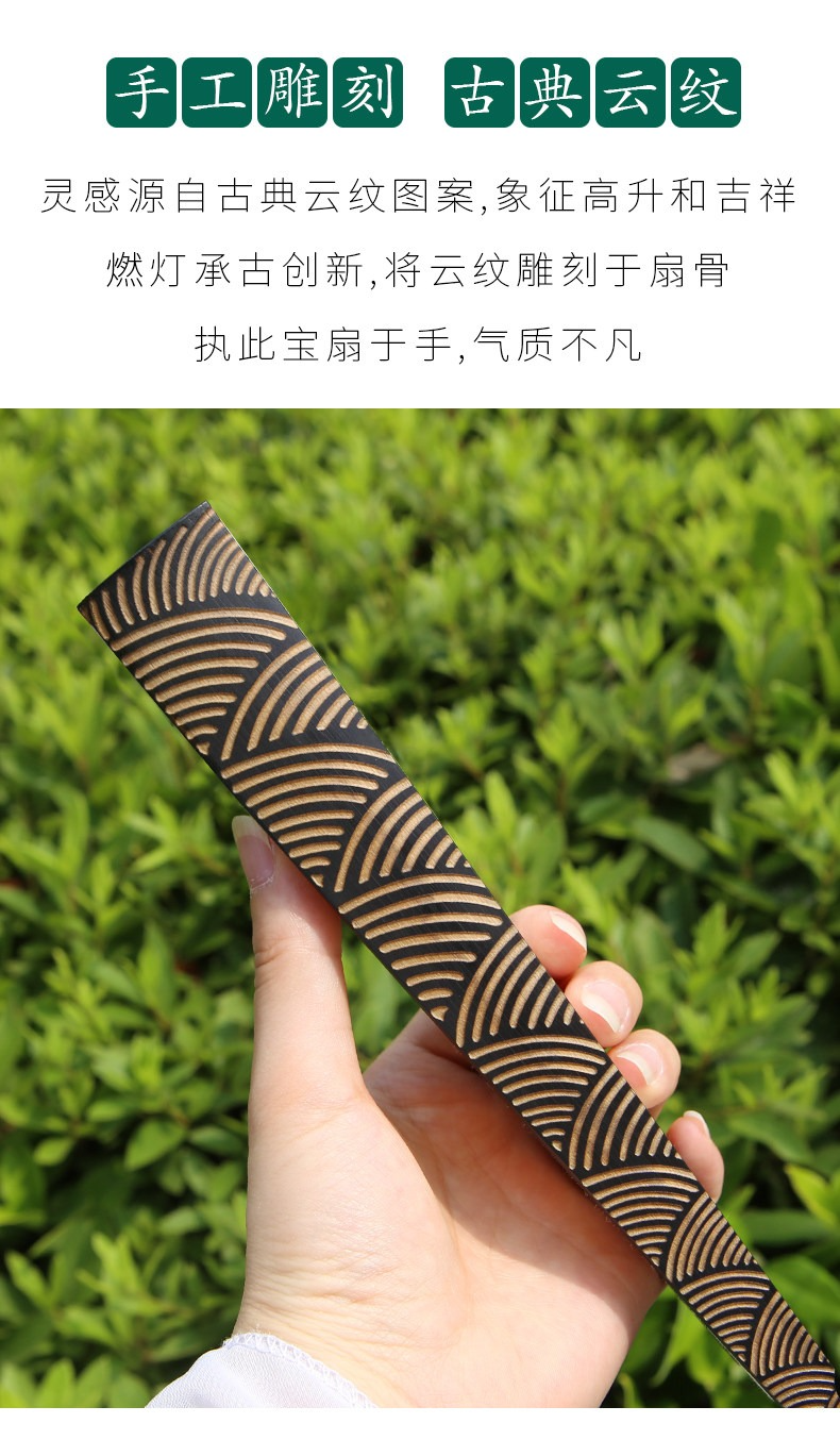 • 海浪云紋雕刻扇【配黑絹灑金扇面】
