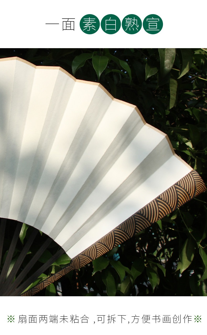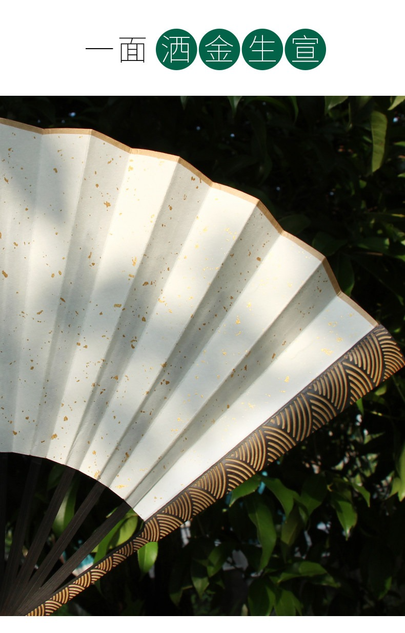 • 海浪云紋雕刻扇【配灑金宣紙扇面】