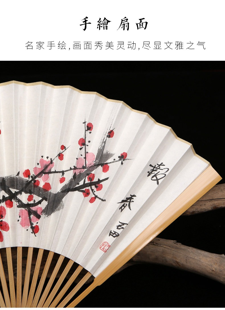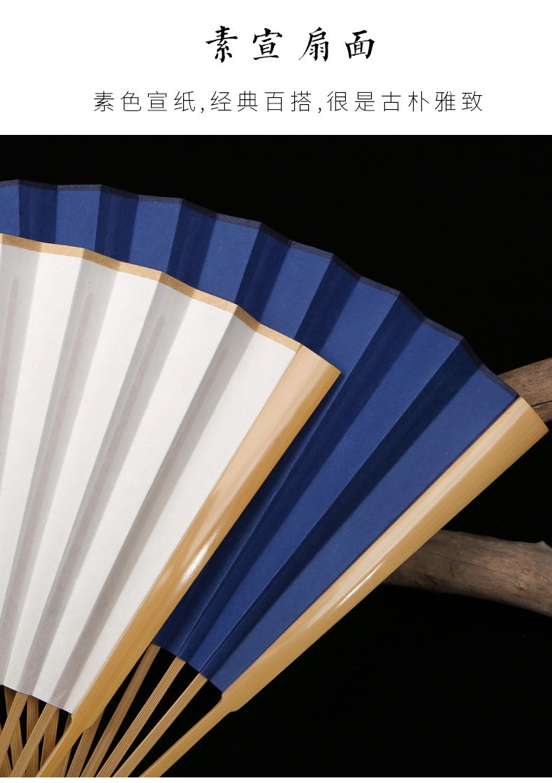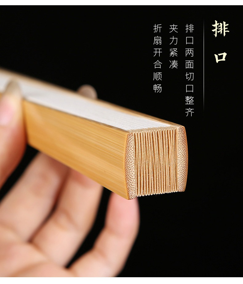 • 9.5寸玉竹小茄頭配蘇工宣紙扇面【送扇箍及扇盒】