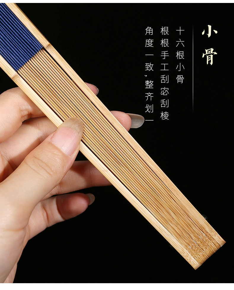 • 9.5寸玉竹小茄頭配藍真金扇面【送扇箍及扇盒】