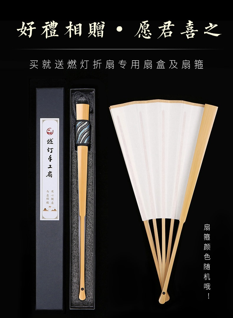 • 9.5寸玉竹小茄頭配白真金扇面【送扇箍及扇盒】