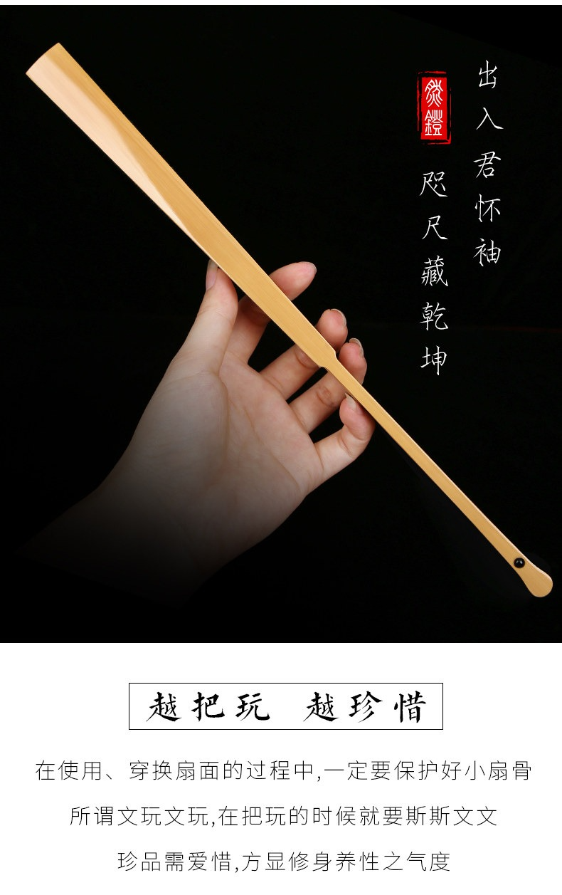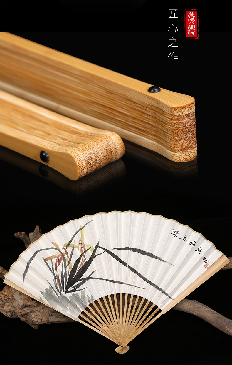 • 9.5寸玉竹小茄頭配超薄蘇工手繪扇面-空谷幽蘭【送扇箍及扇盒】