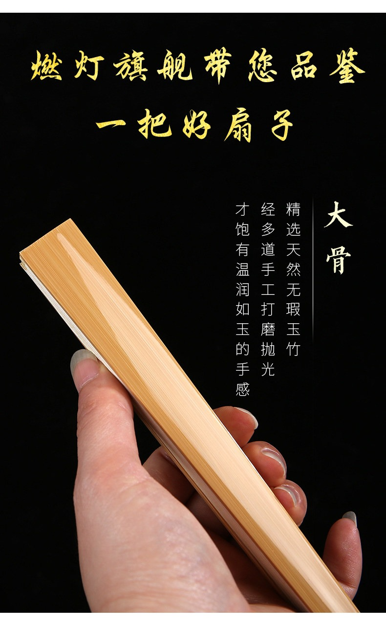 • 9.5寸玉竹小茄頭配黑真金扇面【送扇箍及扇盒】