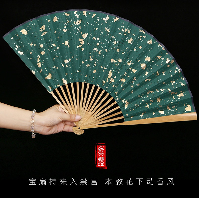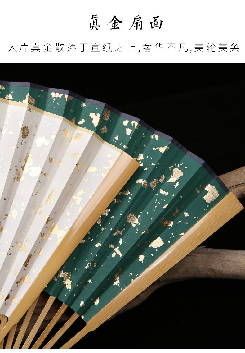 • 9.5寸玉竹小茄頭配綠真金扇面【送扇箍及扇盒】
