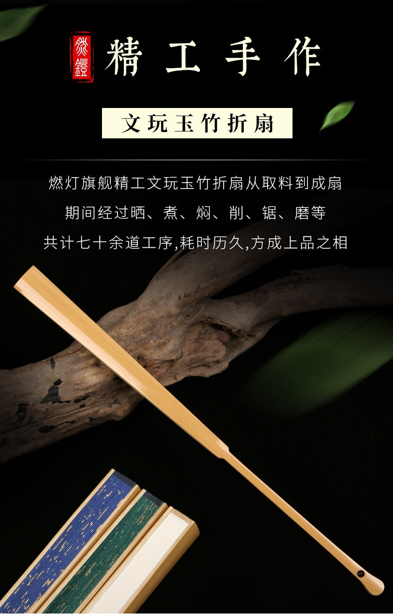 【燃燈】9.5寸18方小茄頭精品蘇工玉竹摺扇文玩扇子件把玩中國風