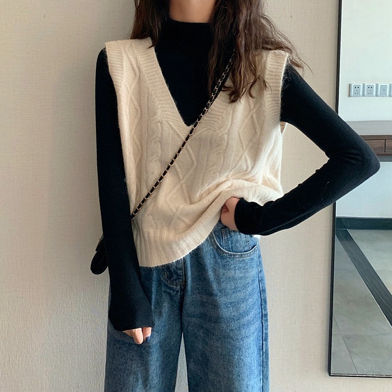 針織背心女薄款馬甲年新款上衣春秋寬松v領無袖坎肩毛衣秋冬