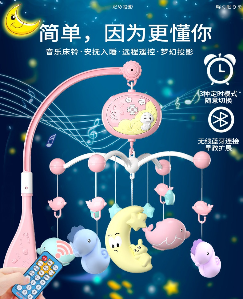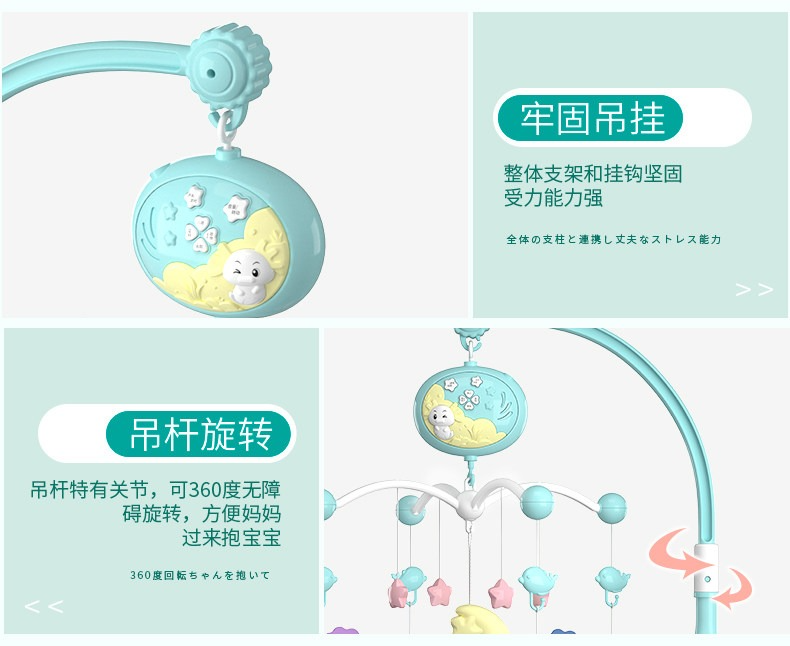 新生嬰兒牀鈴0-1歲3-6個月12男女寶寶玩具音樂旋轉益智搖鈴牀頭鈴