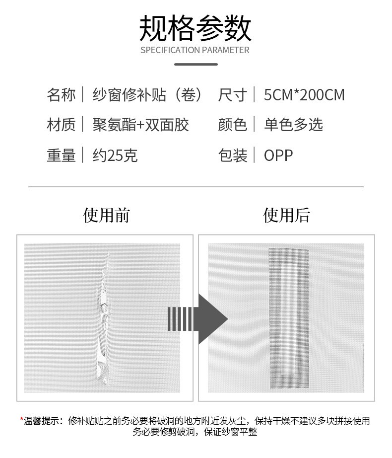 • 白色紗窗修補貼【1卷-2米】+門窗流水孔貼【1張】/200x5cm