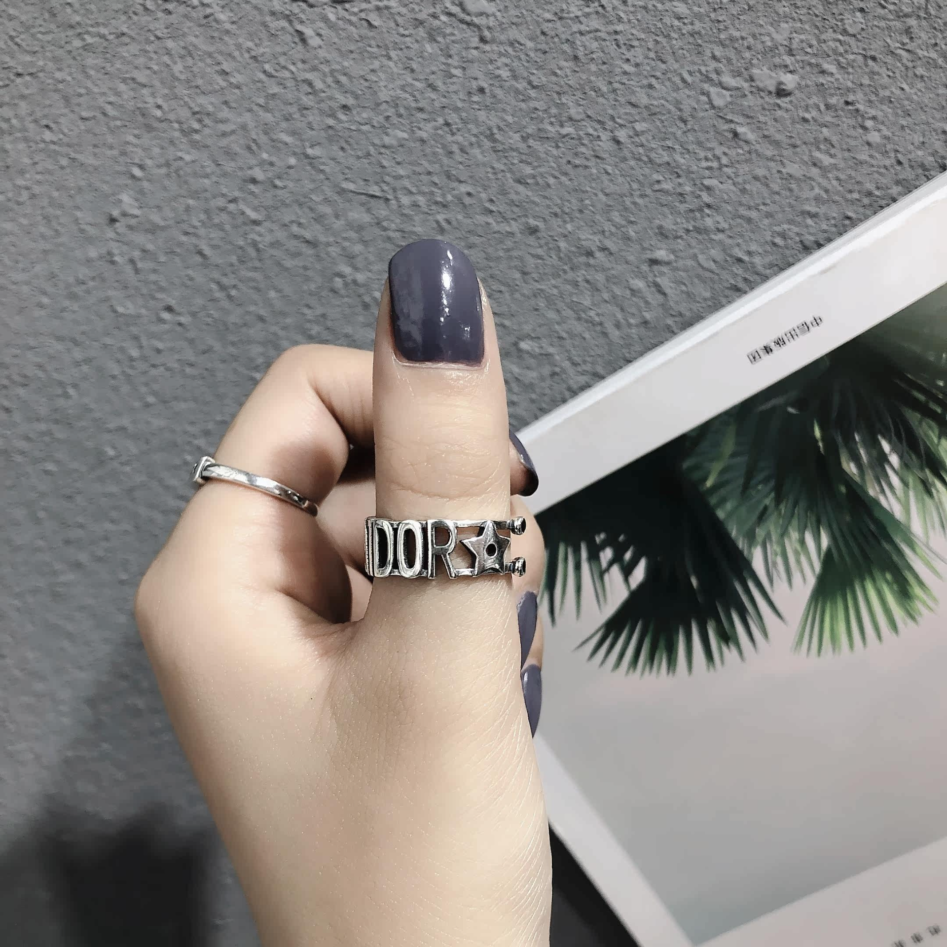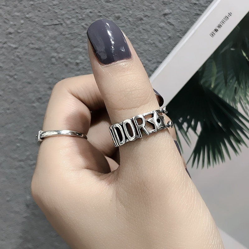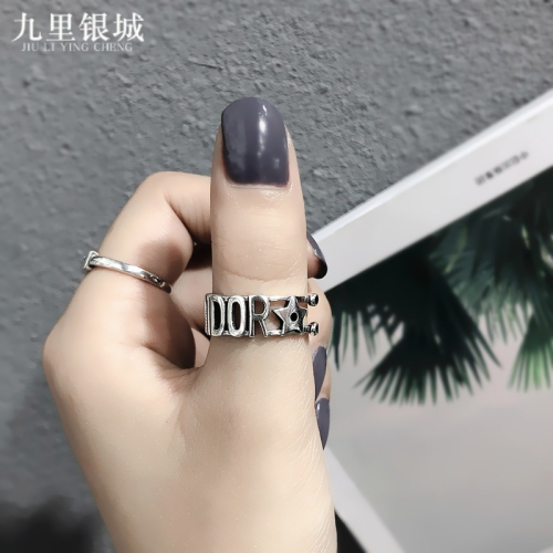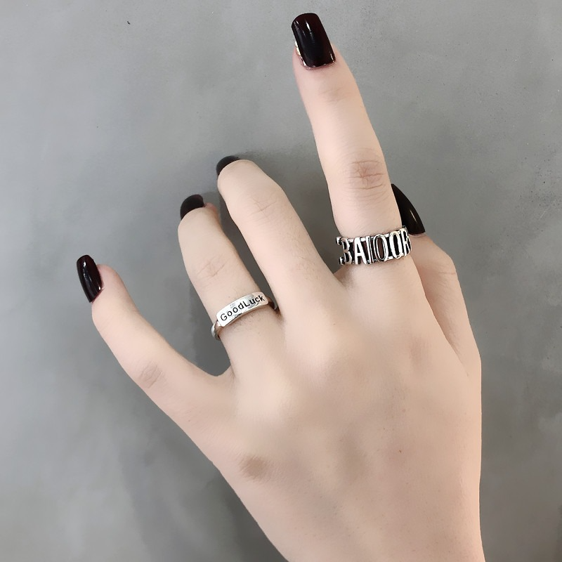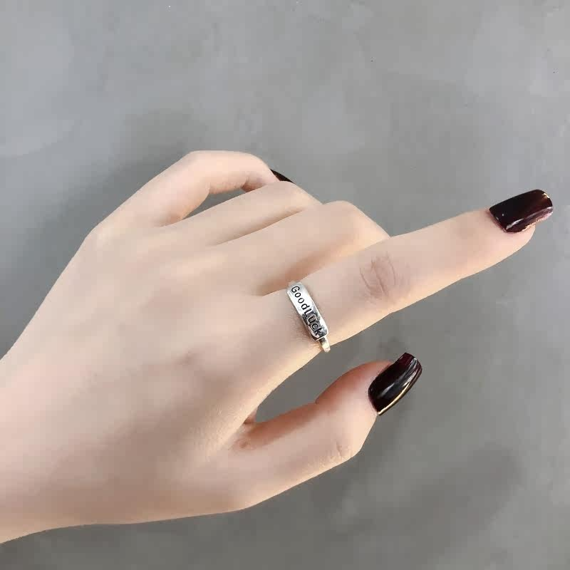 S925銀星星字母戒指百搭GOOD LUCK疊戴個性韓版簡約指環戒子禮物
