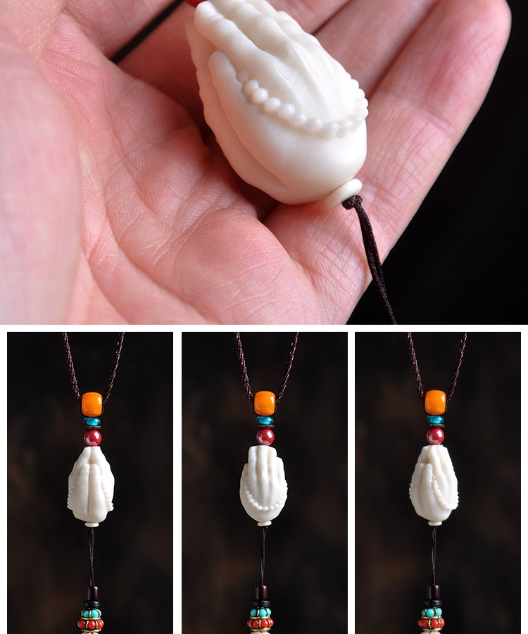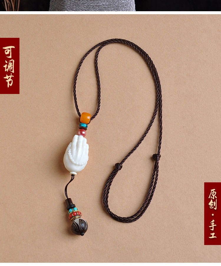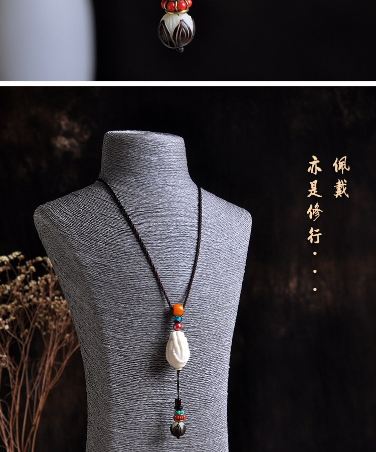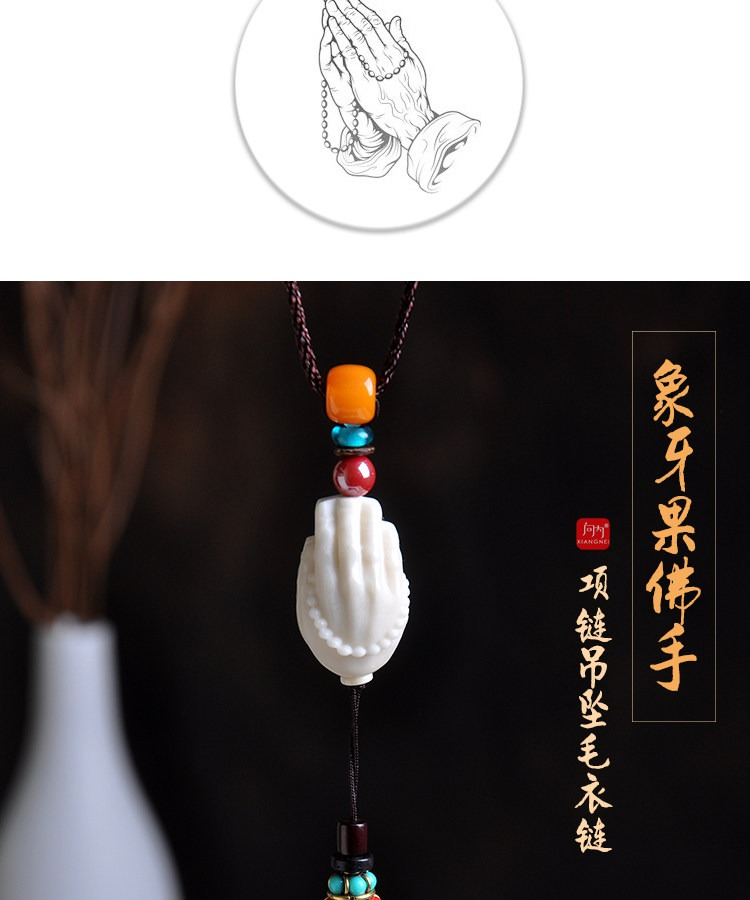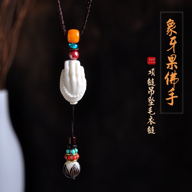 民族風毛衣鏈象牙果菩提佛手吊墜女飾品保平安掛件長項鏈配飾掛墜