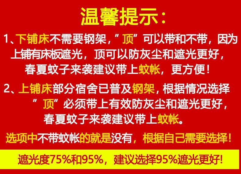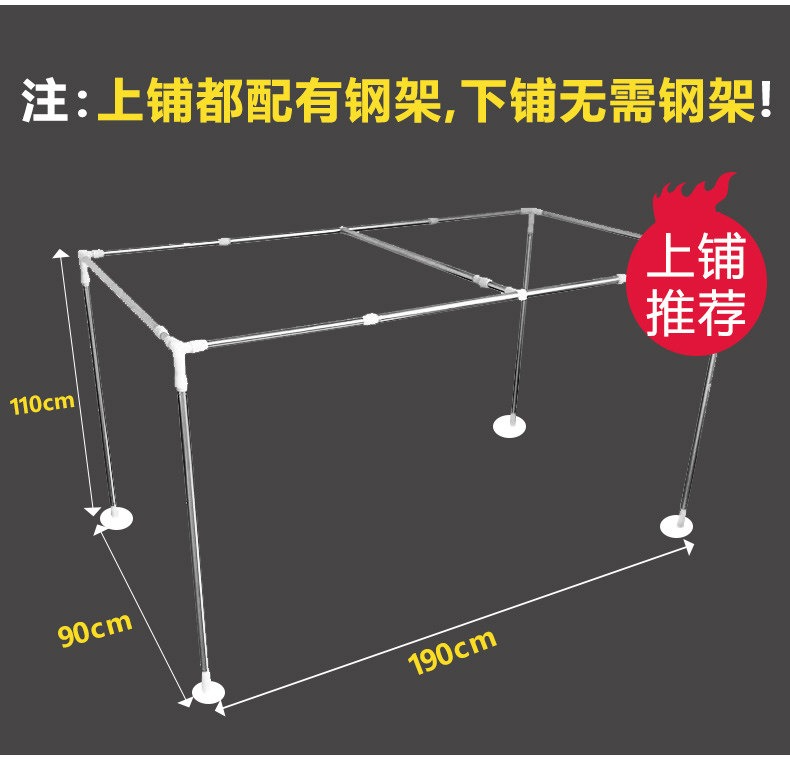 • 提示:上鋪一般需要+鋼架+頂,下鋪可以+頂(防塵哦)-1.2m(4英尺)床