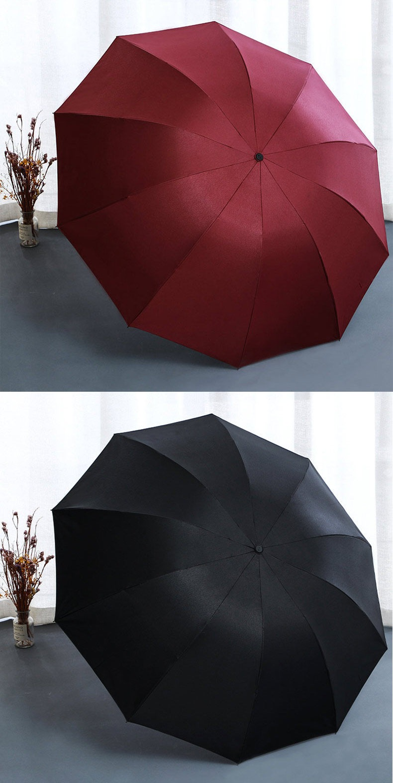 • 【家庭大號大傘-紅色】黑膠3人傘-晴雨兩用-128cm
