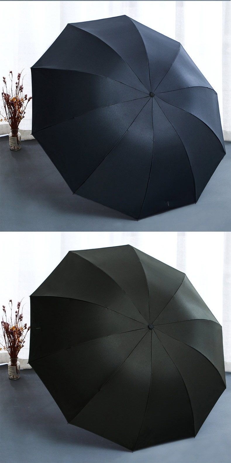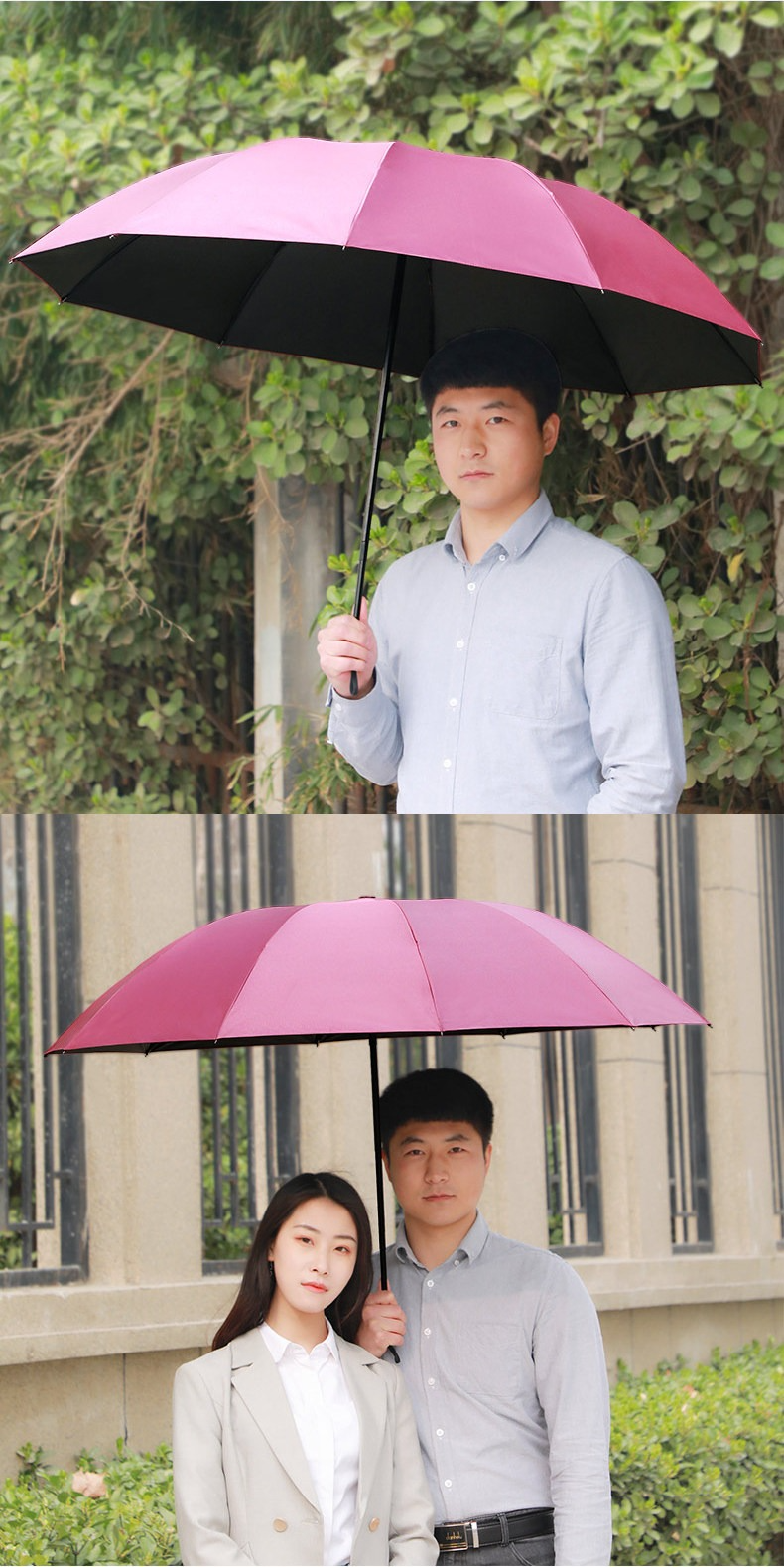 • 【家庭大號大傘-鉻色】黑膠3人傘-晴雨兩用-128cm