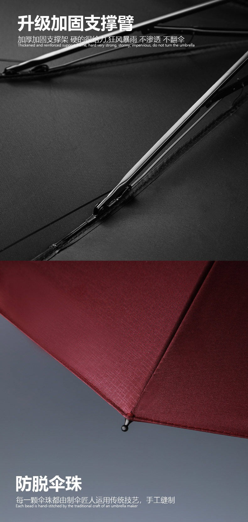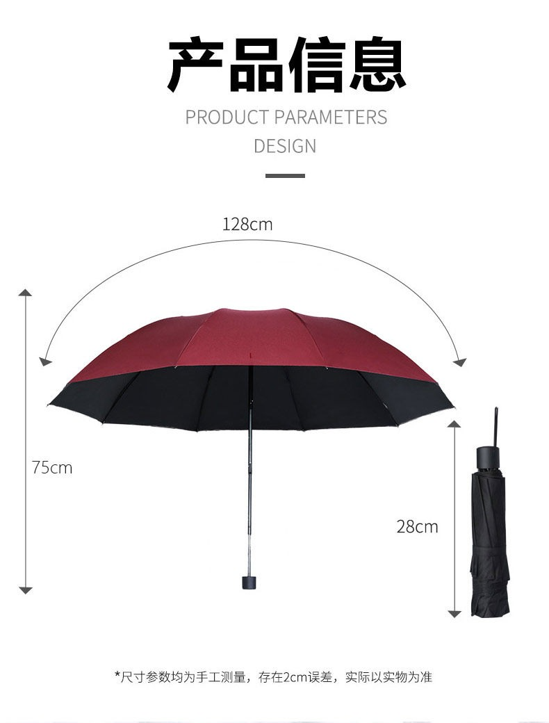 • 【家庭大號大傘】絳紅輕羽黑膠3人傘-晴雨兩用-128cm