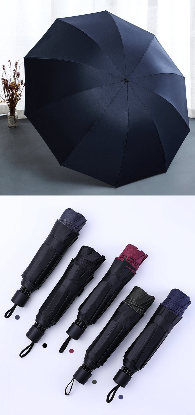 • 【152cm超大傘】33212E-藏藍色-帶黑膠-晴雨傘-152cm