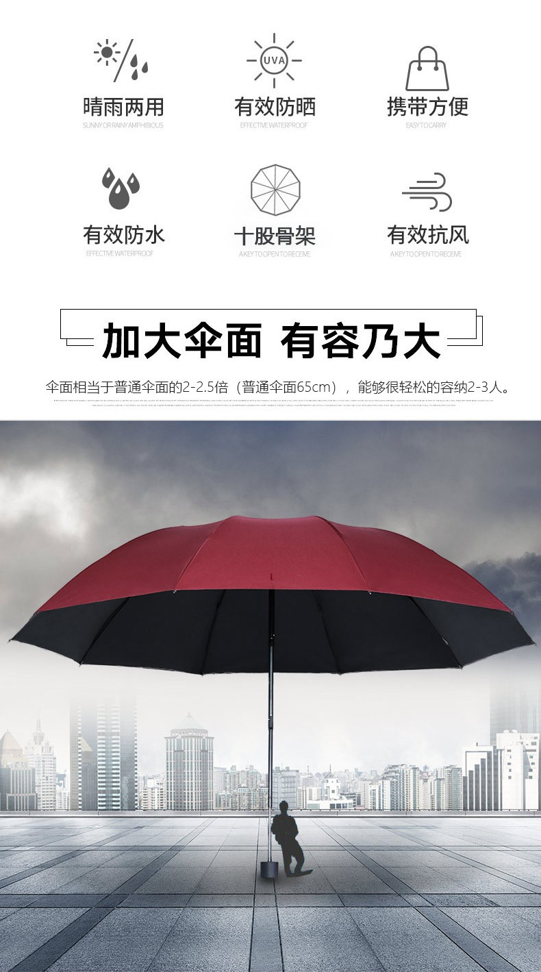 天堂傘雨傘大號加大加固折疊三折晴雨兩用傘防曬遮陽傘太陽傘男女