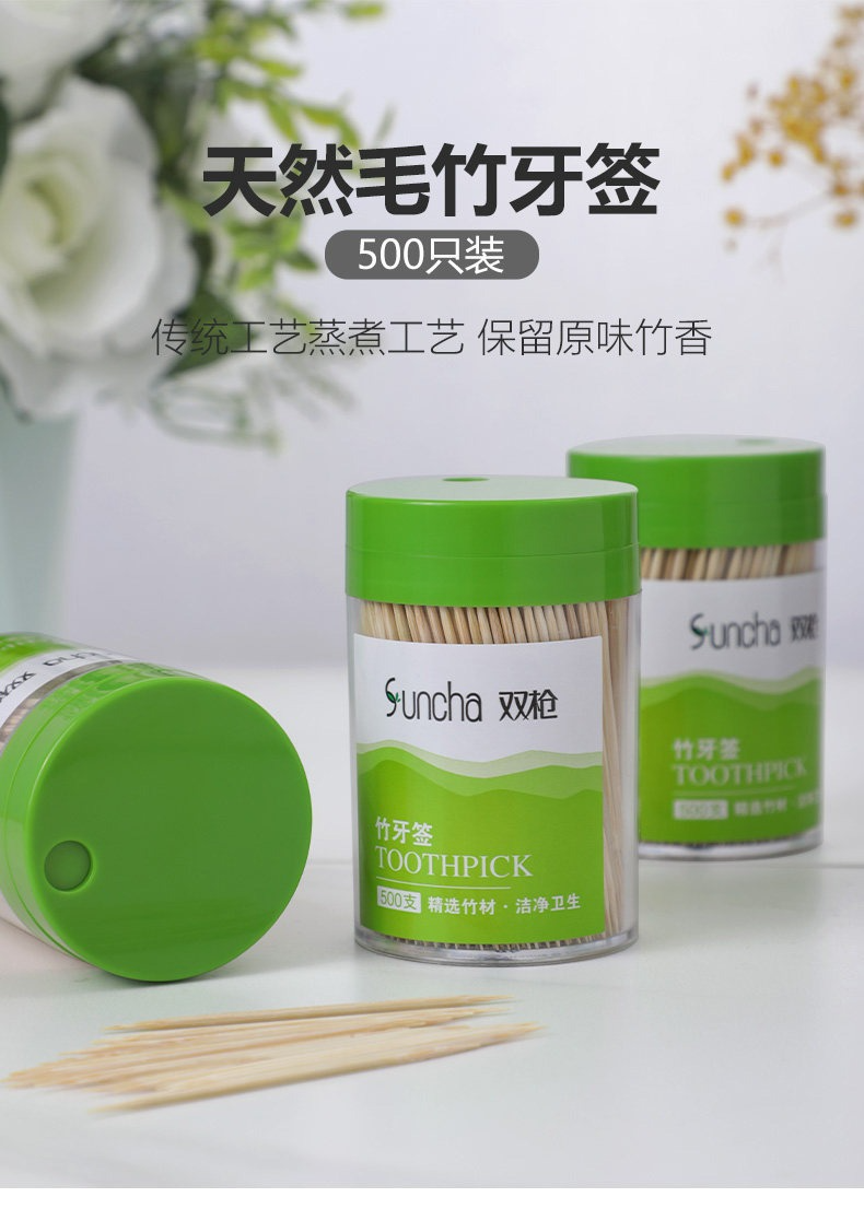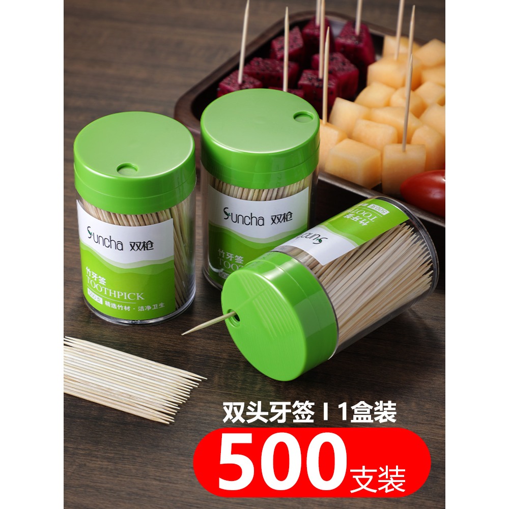 雙槍牙簽家用竹製商用優質竹牙簽棒超細特細盒裝雙頭尖一次性精品
