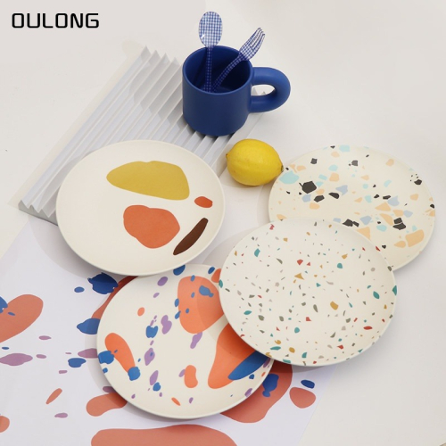 北歐創意野餐盤子ins風手繪竹纖維盤餐盤野餐兒童餐具