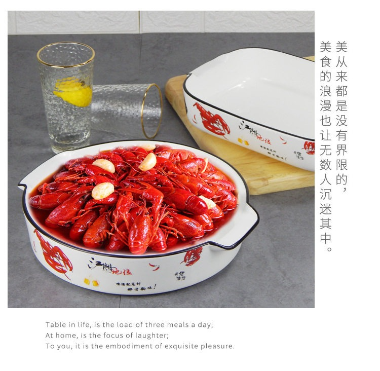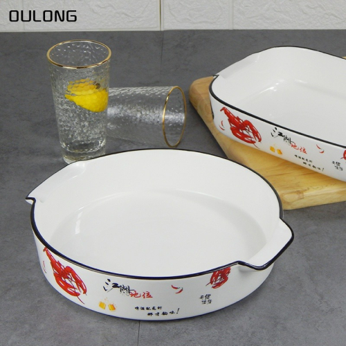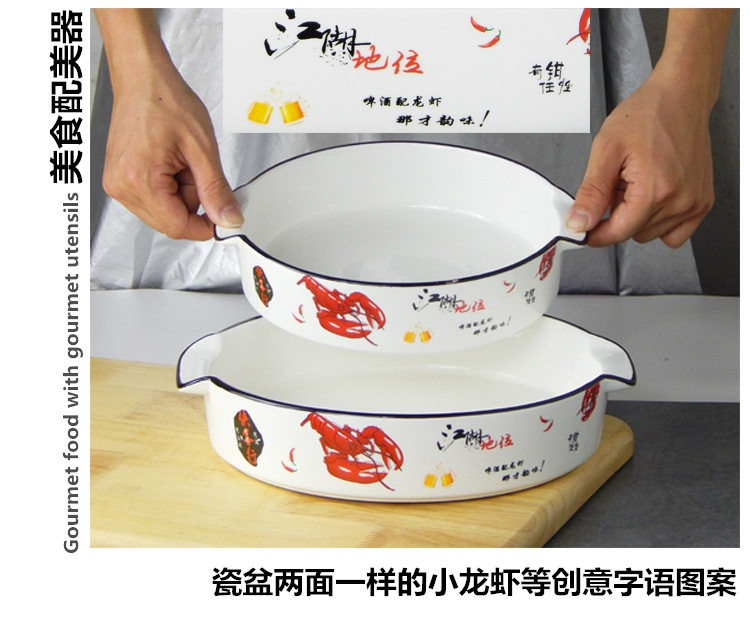 復古盤子陶瓷菜盤子雙耳深盤創意日式湯盤大號家用碗盤圓形