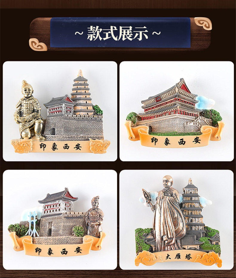 中國陜西安兵馬俑冰箱貼磁貼立體人物大雁塔鼓樓磁鐵