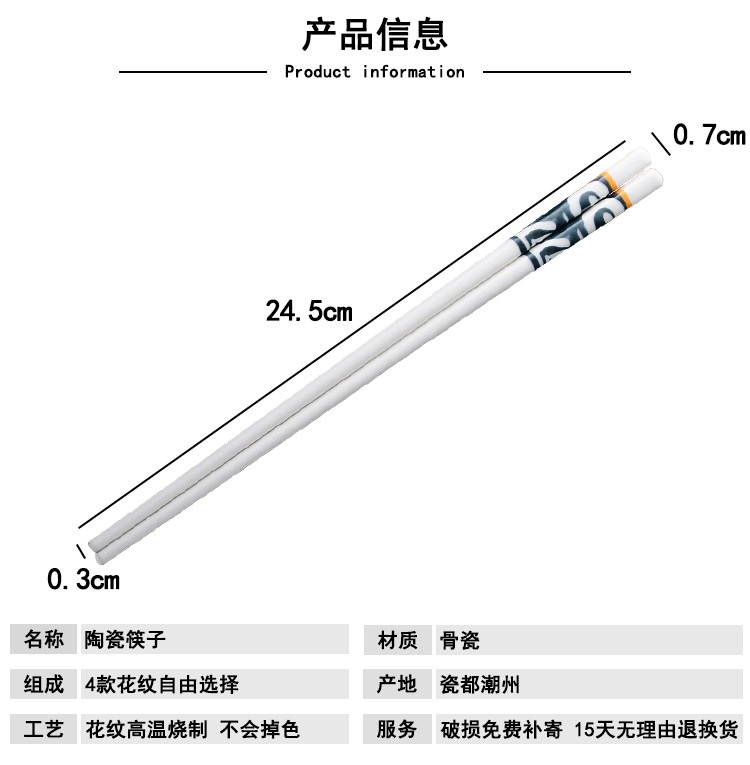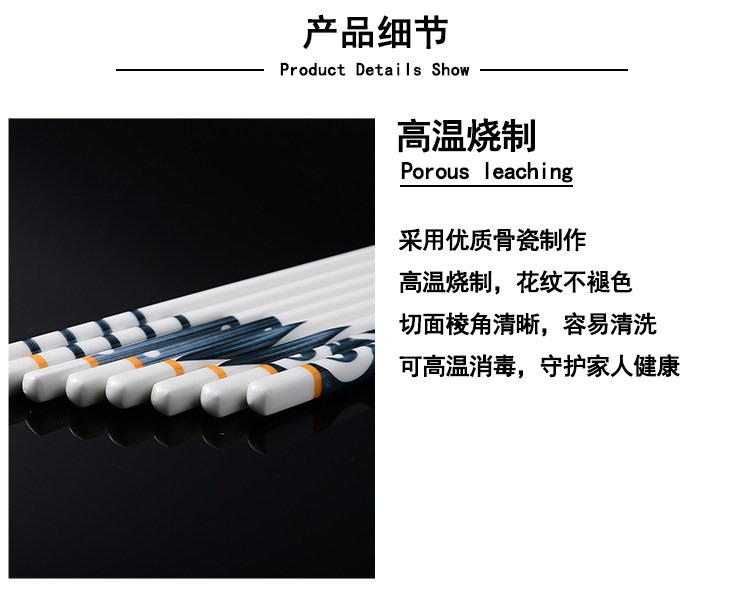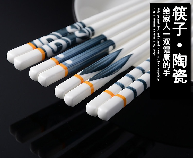4雙陶瓷筷子家用高檔青花瓷防滑日式骨瓷筷網紅精緻抗摔衛生