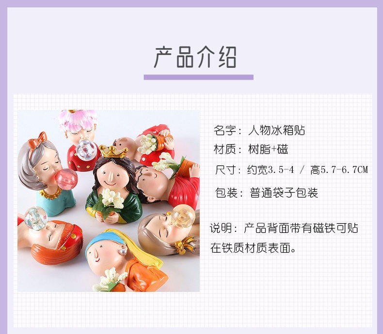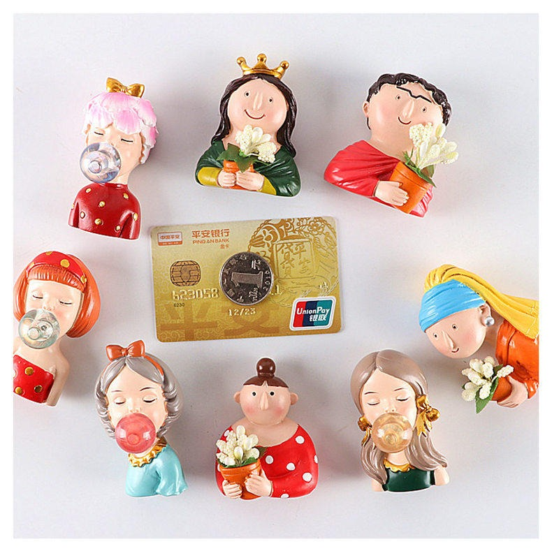 創意可愛人物磁性冰箱貼立體蒙娜麗莎吹泡泡磁力貼吸鐵石