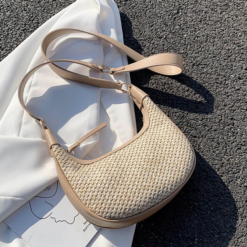 洋氣法國小眾高級質感腋下包2021新款流行復古百搭編制沙灘斜挎包