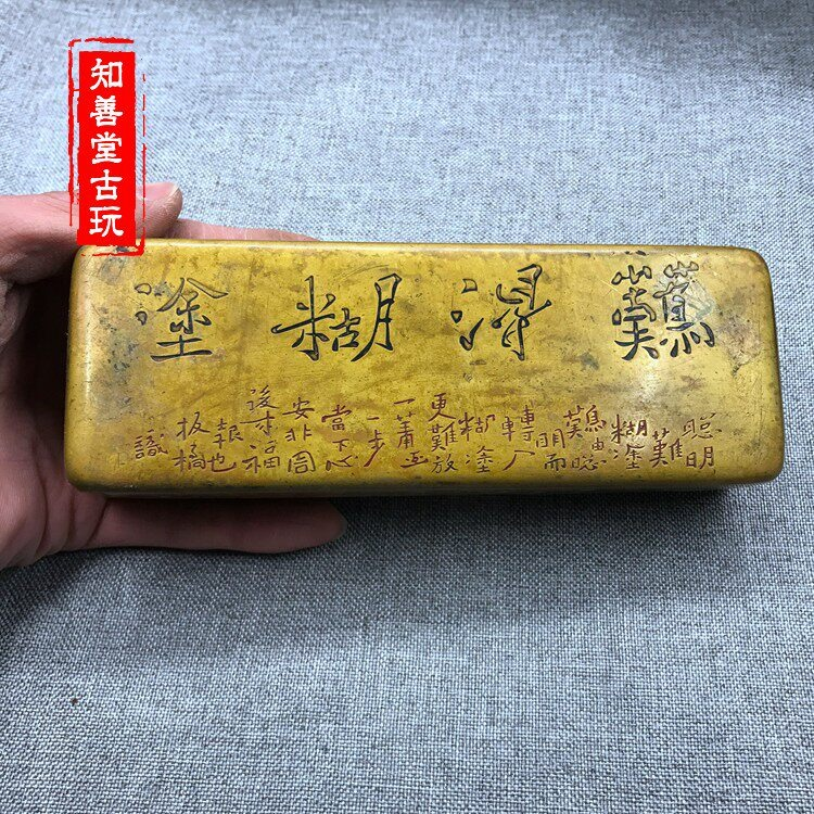 【品名】:難得糊塗方形黃銅墨盒