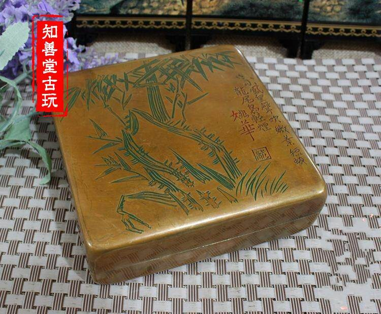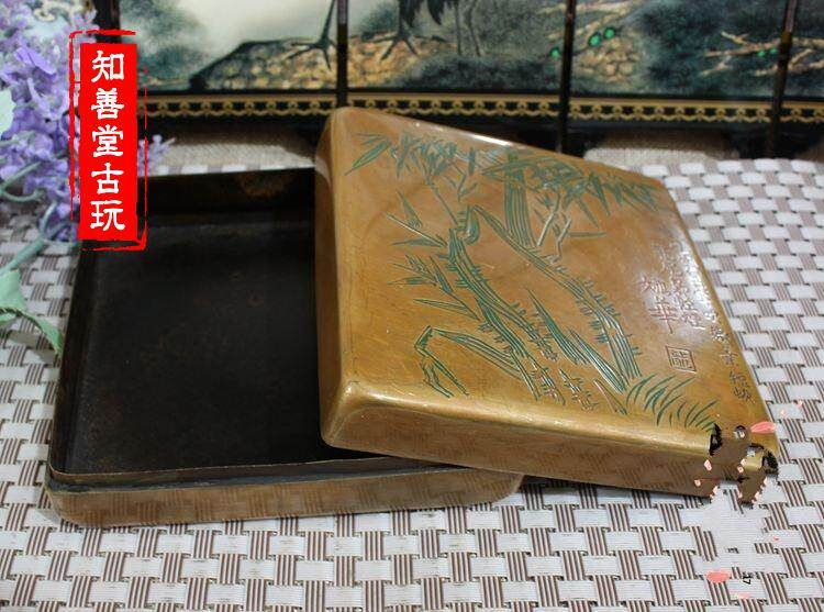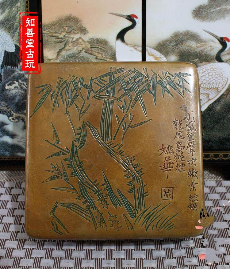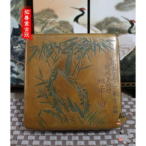 【品名】:翠竹黃銅墨盒