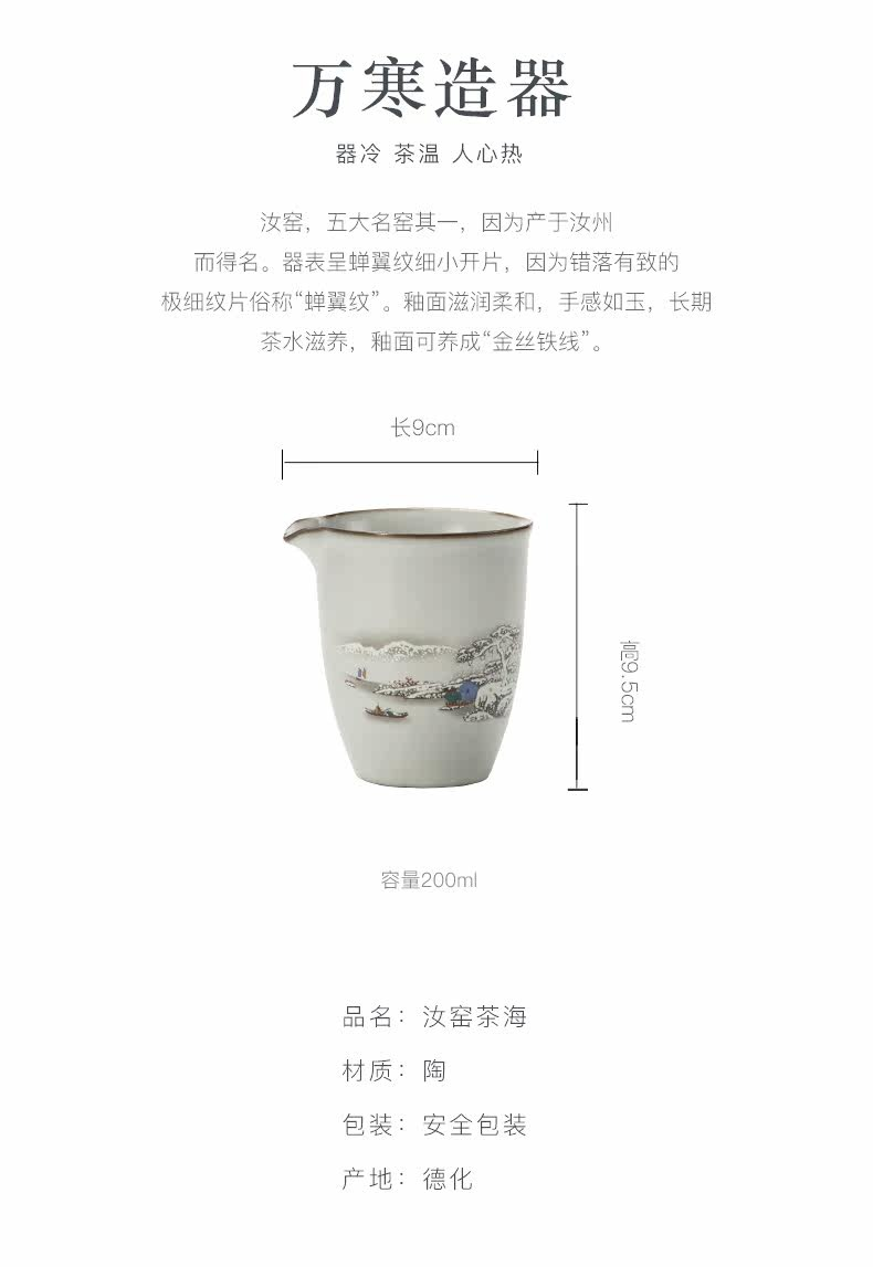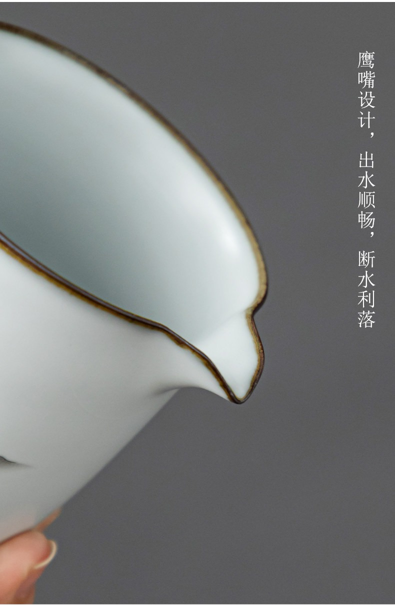 月白汝窯仿古茶海公道杯陶瓷分茶器汝瓷開片可養單個公杯日式大號