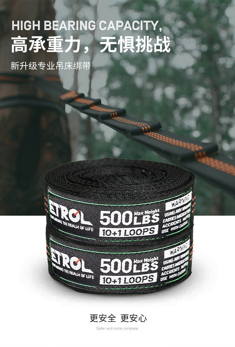 ETROL戶外吊牀專用綁帶尼龍綁繩高承重便攜套環露營用品鞦韆吊繩
