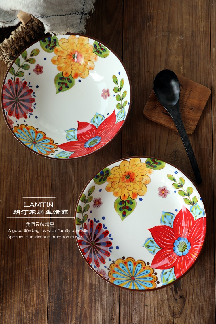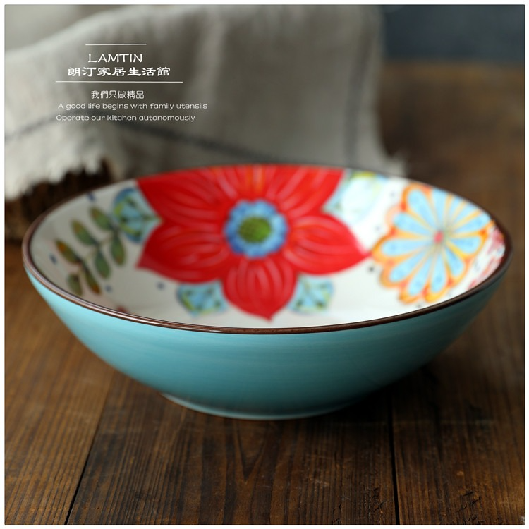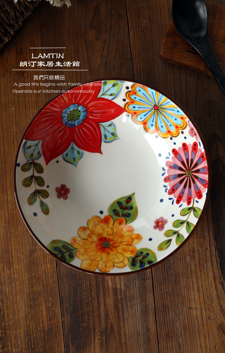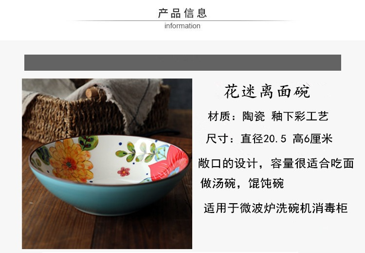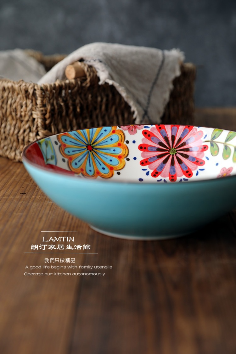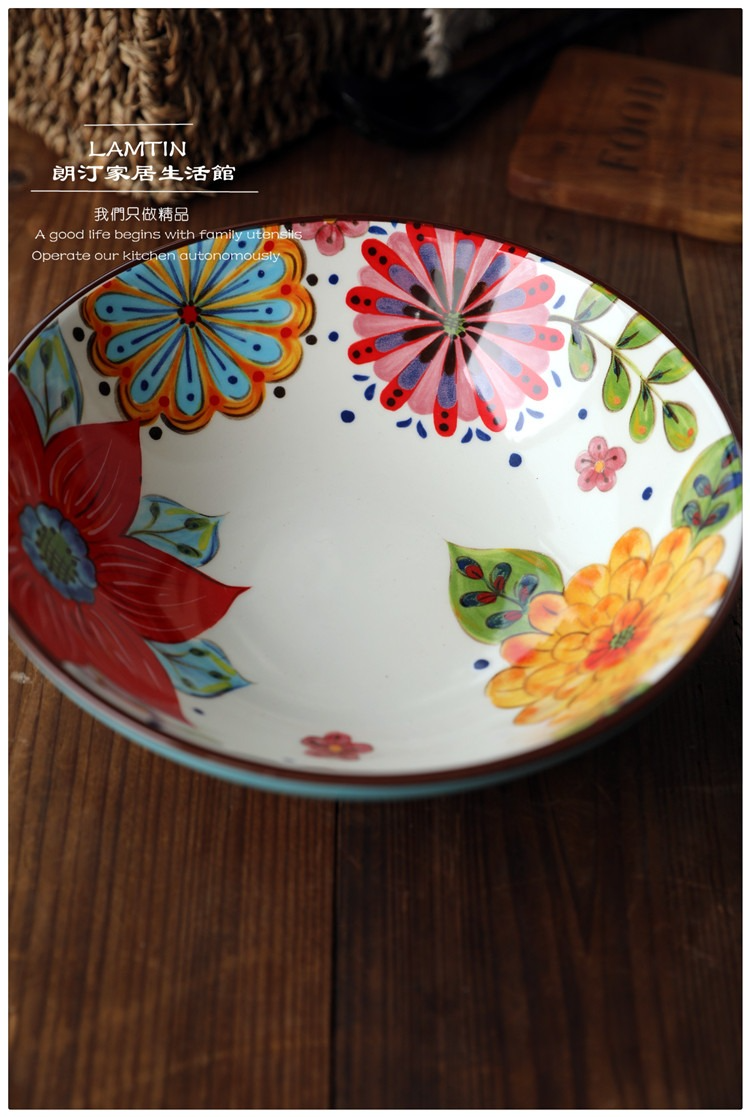 朗汀 花迷離創意陶瓷麪碗湯碗蓋澆飯碗甜品碗沙拉碗拉麪碗餛飩碗