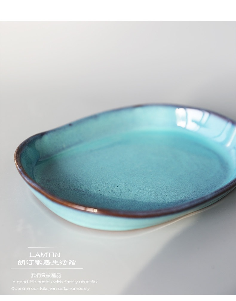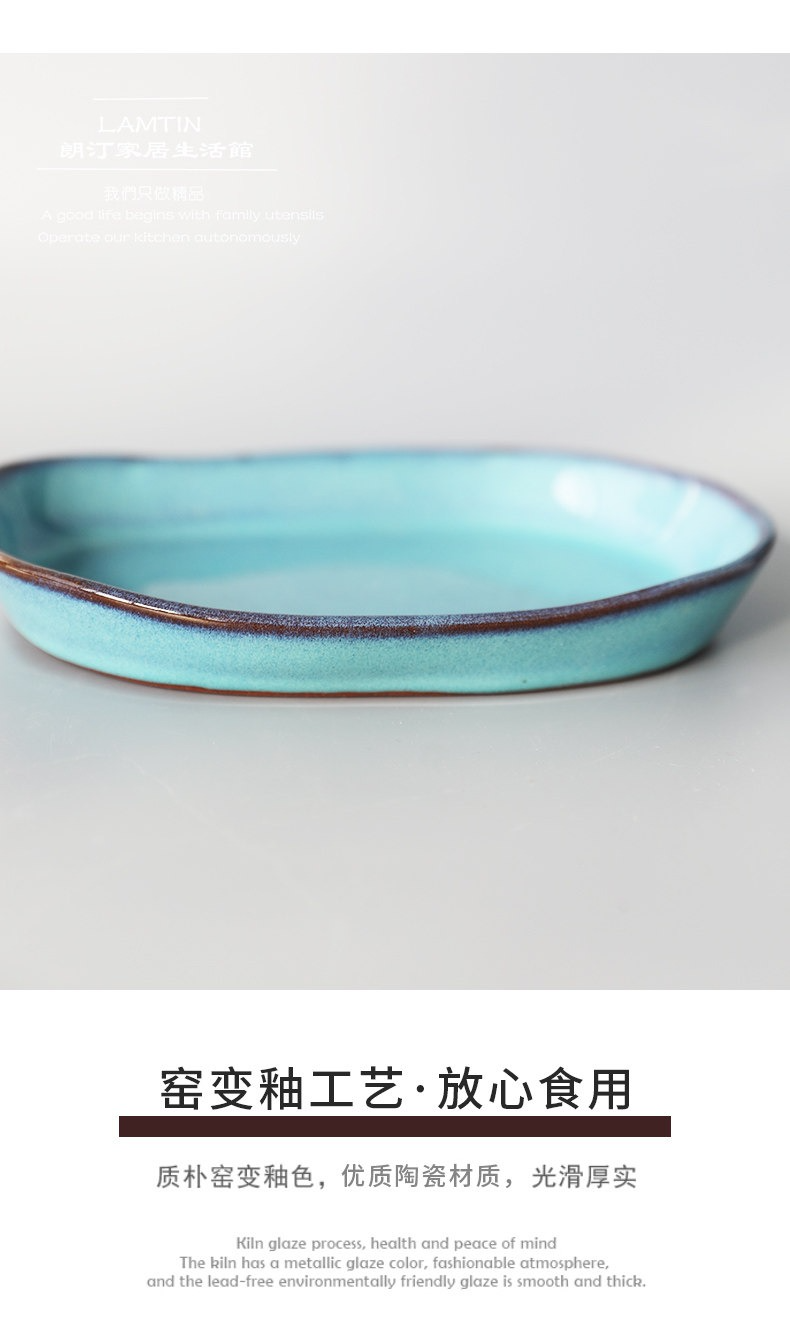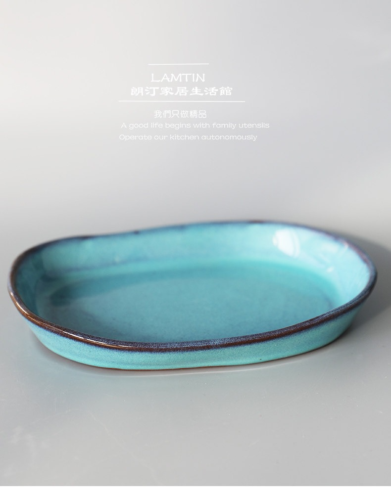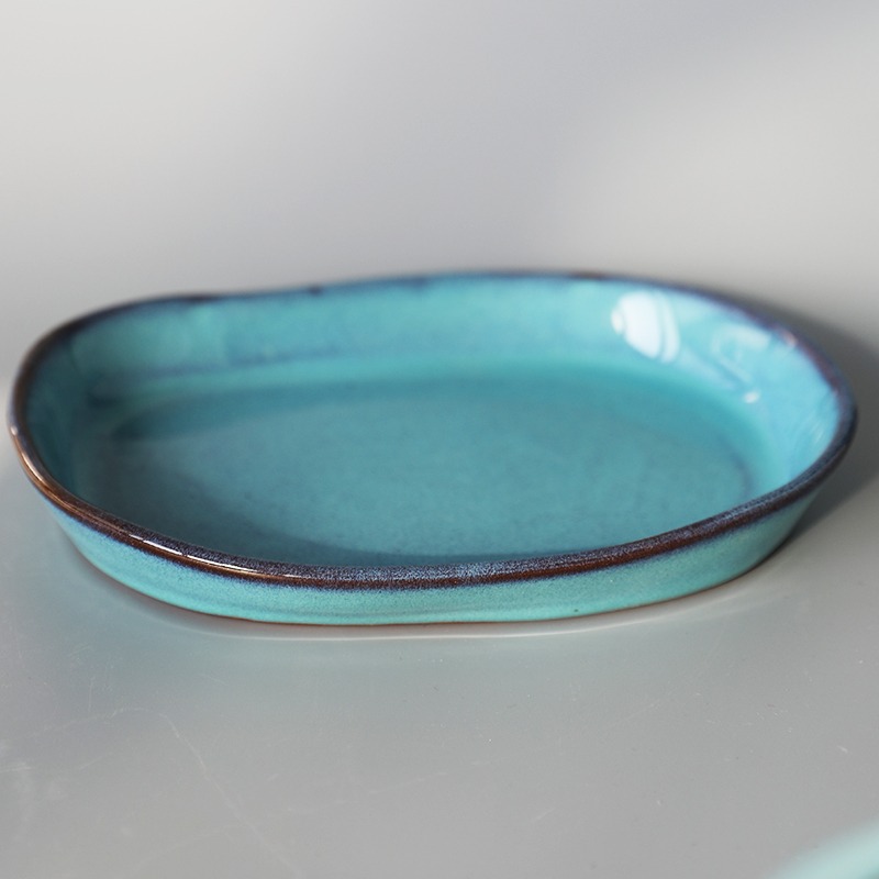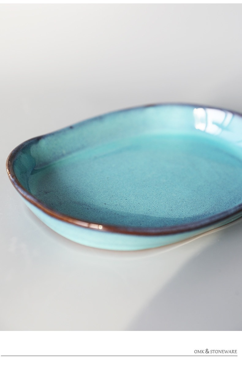 創意粗陶陶瓷沙拉焗飯淺口盤不規則手工創意長條橢圓盤日式料理盤