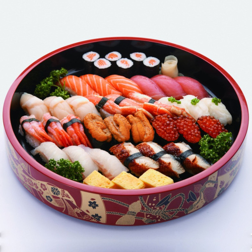 喜慶紅色壽司盆刺身壽司盤壽司盛臺日韓料理刺身盛器壽司罐壽司桶