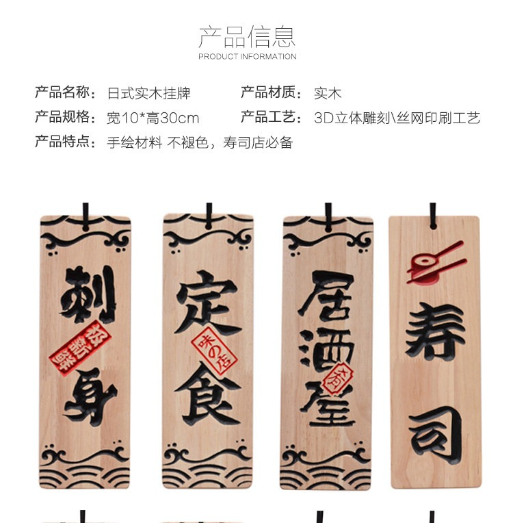 日式和風掛牌 實木菜單掛牌門牌壽司立體雕刻字木質刺身小木牌字