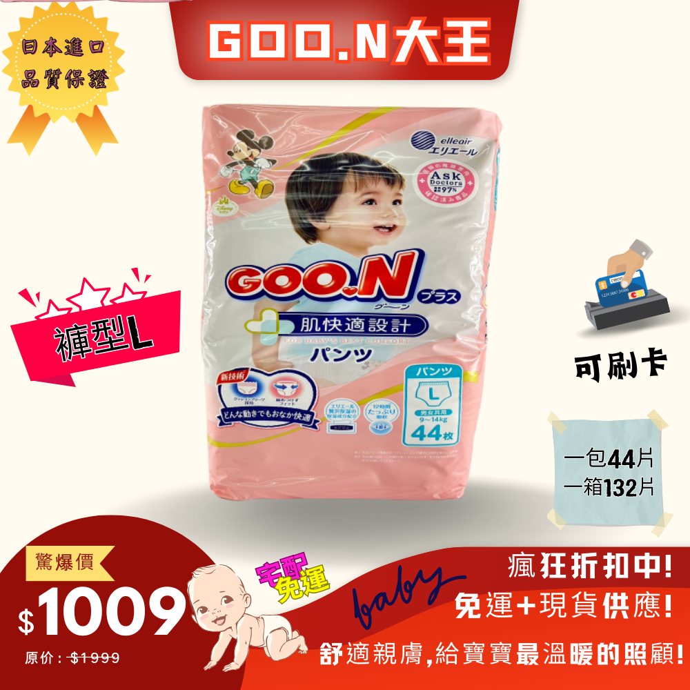 大王【 肌快適 褲型 L 】GOO.N 日本大王 境內版 尿布 紙尿褲(一箱132片)平輸 廠商直送 嬰幼兒 彌月禮