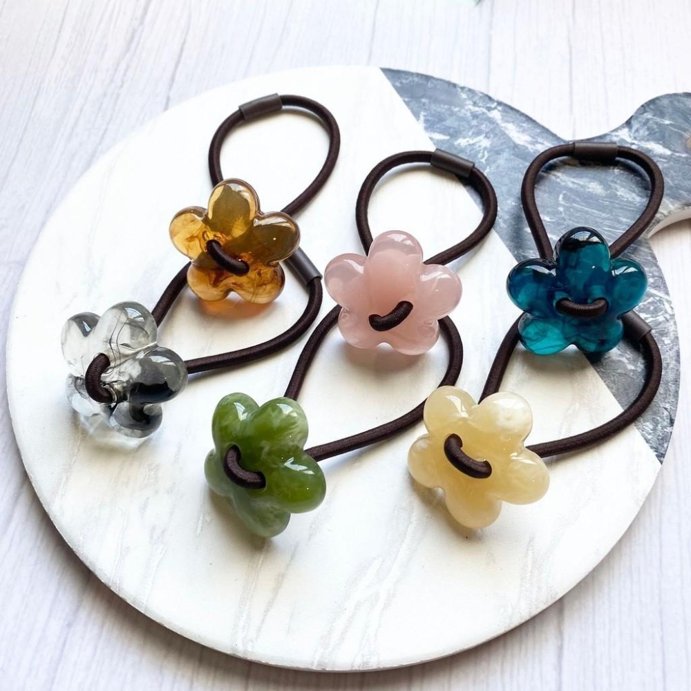 【Fash Accessory 髮飾專賣店 清新半透明琥珀色小花髮束髮圈】