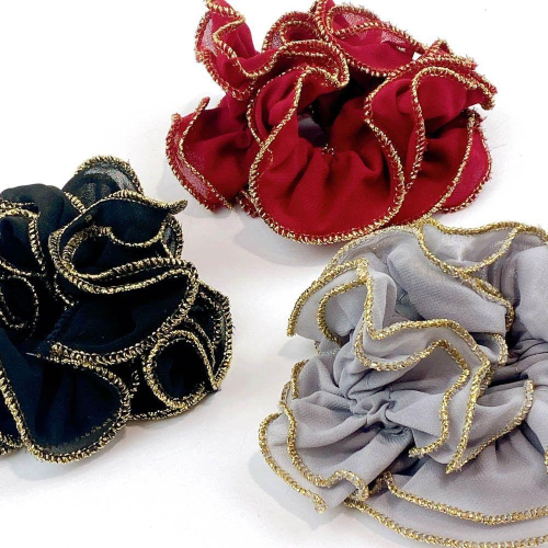 有金色的滾邊處理,讓髮圈像花朵一樣