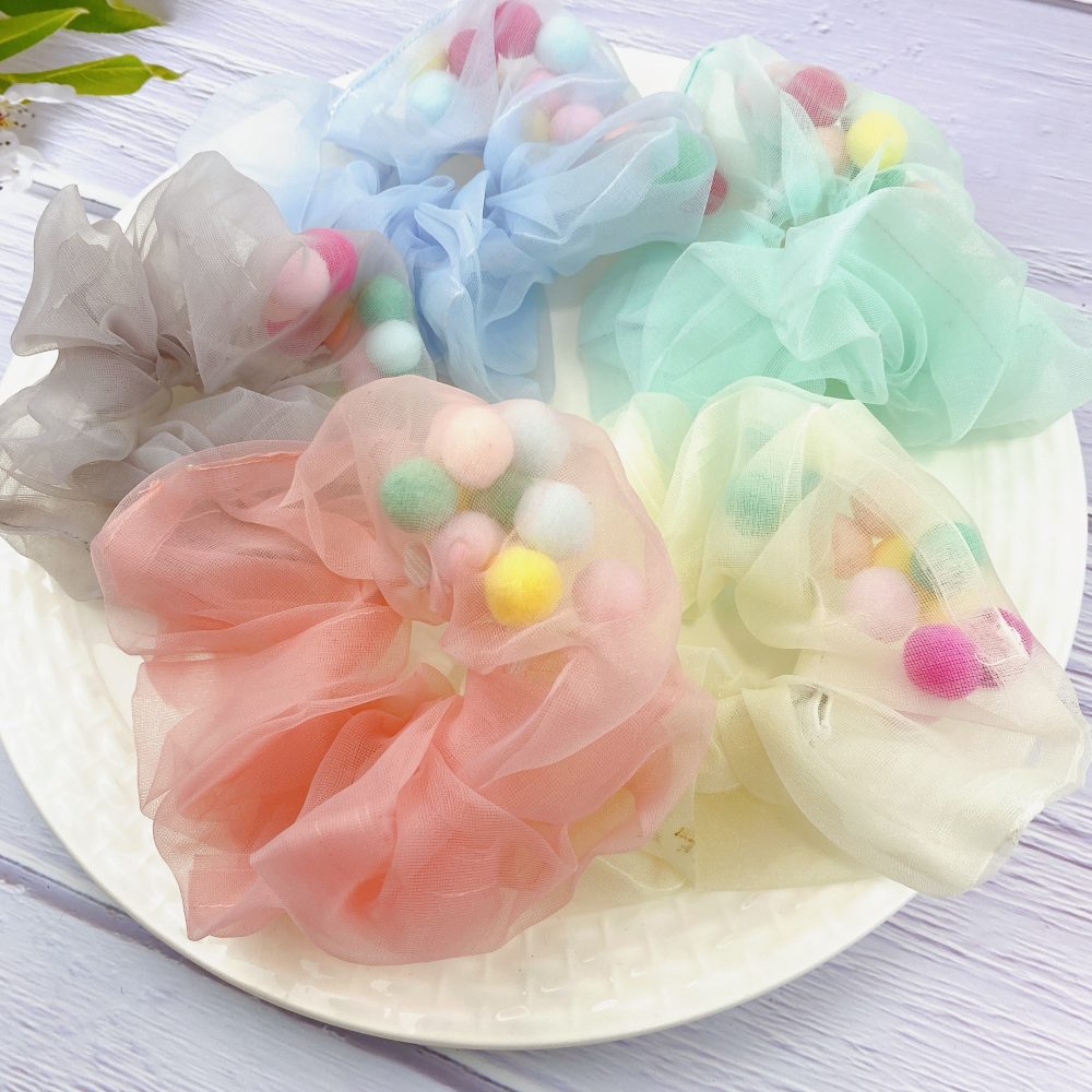 【Fash Accessory 髮飾專賣店 網紗彩色毛球大腸圈髮圈】