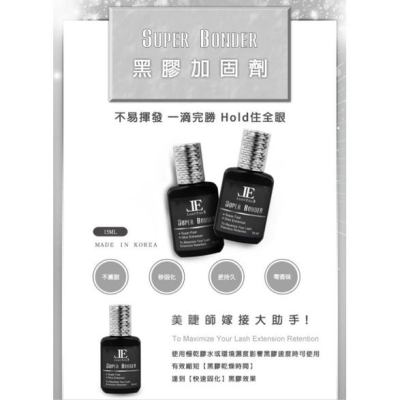 SUPER BONDER 黑膠加固劑 15ml 此產品勿與黑膠直接混合使用 美睫師專用 非專業人員請勿購買使用 讓嫁接更快速順暢的好幫手 不易揮發 一滴完勝 HOLD住全眼 【不薰眼】【秒固化】【零香味】【更持久】 ~三種使用方法~ 任選一種使用方法就能幫助黑膠快速固化! 還能延長嫁接持久度~ ●方法一 / 可於需要立刻使用的排毛根部 薄擦一層,使用多少塗多少 ●方法二 / 開花後,先沾適量黑膠加固劑 之後再沾黑膠進行嫁接動作 ●方法三 / 嫁接完成後,可使用棉籤, 於根部黑膠接點處薄擦一層 (在拆除眼膜、嫁接膠帶前使用,避免接觸到皮膚)