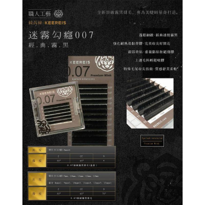 〖綺芮絲 迷霧勾癮007〗 柔軟細緻 經典系迷情霧黑 三種捲度滿足各種眼型搭配 ■排數 12排 ■捲度 C55°/CC65°/D75° ■單尺寸 9/10/11/12/13 ■綜合版 8-13 ■排數 6排 迷你小盒裝 ■捲度 C55°/CC65° ■單尺寸 8(小盒只有8mm哦) ➡️先聊聊確定尺寸 ➡️大量另有優惠請聊聊