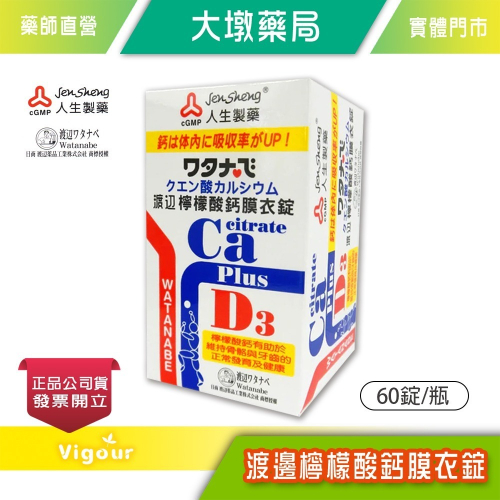 人生製藥 渡邊檸檬酸鈣膜衣錠 60錠/瓶