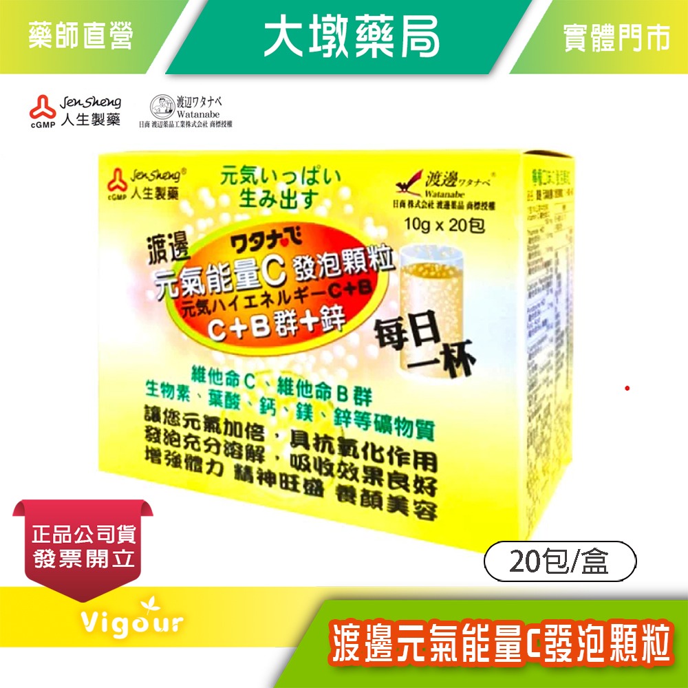 人生製藥 渡邊元氣能量C發泡顆粒 20包/盒