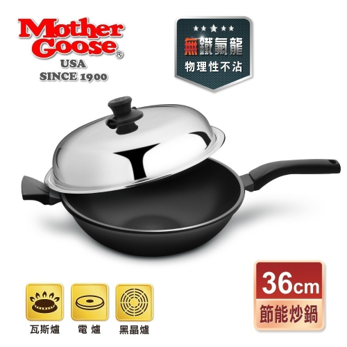 【美國MotherGoose 鵝媽媽】晶鑽輕量航太合金手工鑄造無塗層物理性不沾節能深炒鍋(36cm)-單把