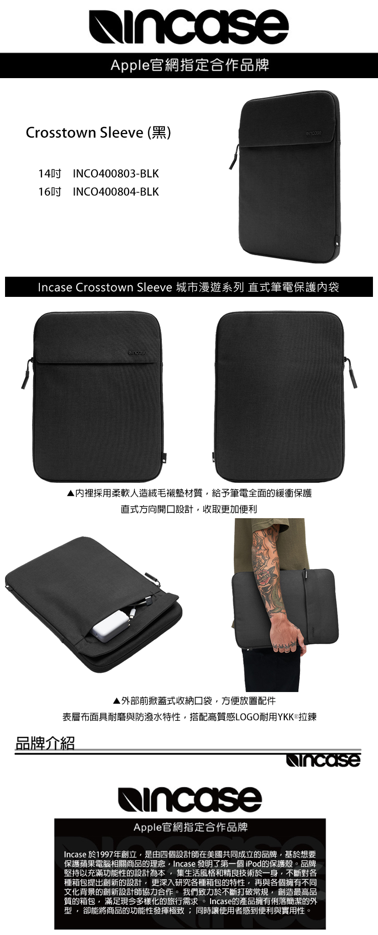 Incase Crosstown Sleeve 城市漫遊系列 直式筆電保護內袋 (黑)