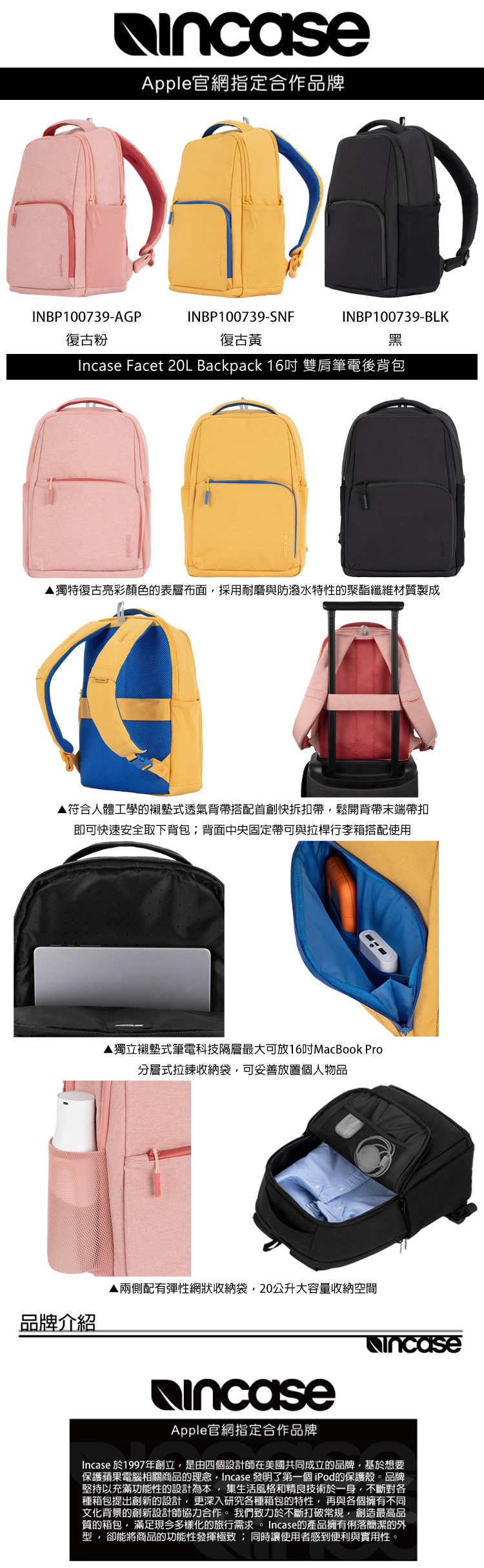 Incase Facet 20L Backpack 16吋 雙肩筆電後背包 (三色)