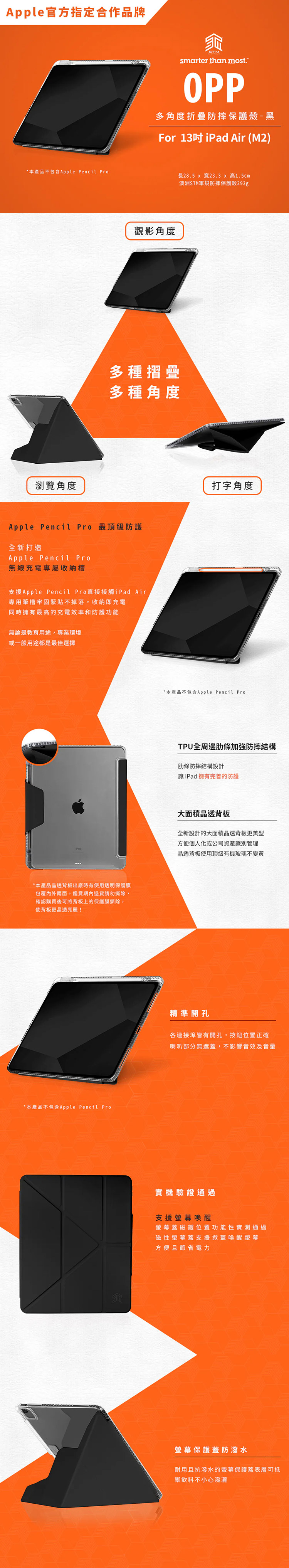 STM OPP iPad Air 13吋 (M2) 多角度折疊防摔保護殼 (黑)