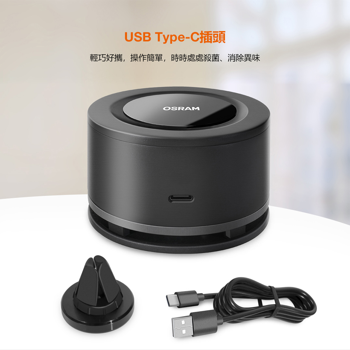 〖歐司朗〗💡含稅★輕巧紫外空氣殺菌機 2.5W USB充電 磁吸固定座 去除異味 光彩