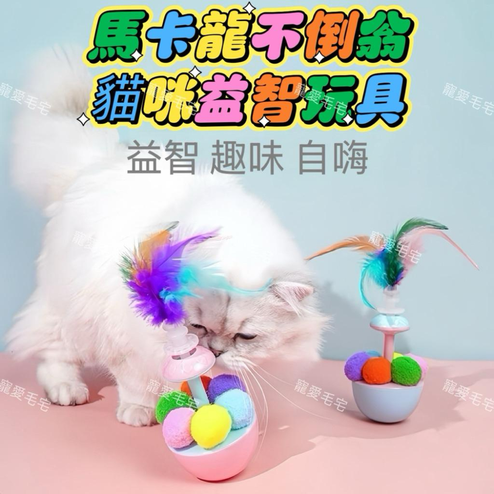 寵愛毛宅 貓咪玩具 毛絨不倒翁貓玩具 薄荷逗貓玩具 自嗨解悶羽毛玩具 貓咪互動玩具 馬卡龍球益智玩具