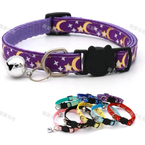 寵物毛宅 寵物項圈 貓咪項圈 貓咪鈴鐺項圈 月亮燙金項圈 幼犬小型犬項圈 寵物頸圈 安全扣可調節尺寸